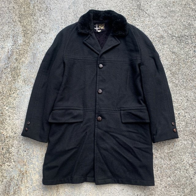 > 【M/L】North Trail 裏ボア ウール ギャングコート ジャケット ブラック 黒無地■ビンテージ オールド レトロ アメリカ古着 60s