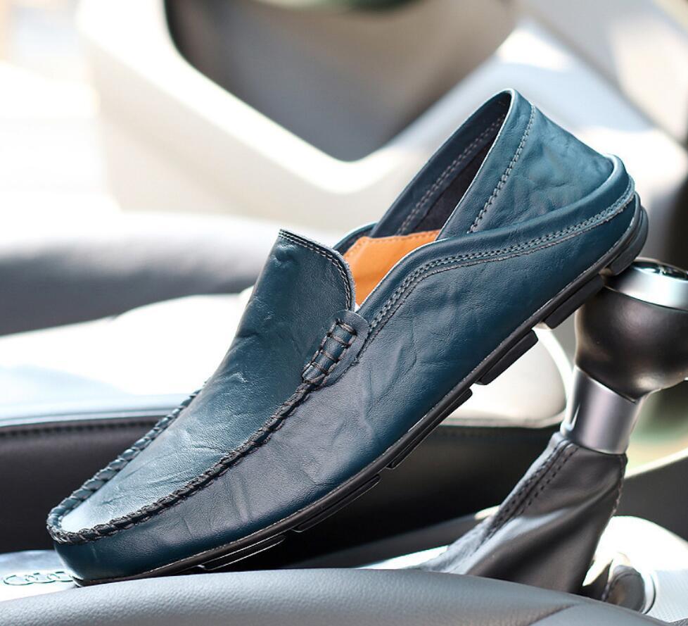 - 39-47サイズ選択 * メンズシューズ 本革 モカシンシューズ レザーシューズ ローファー スリッポン ドライビングシューズ * 紺