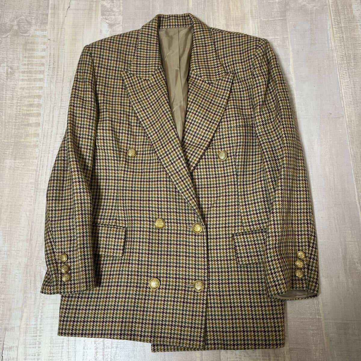 > 【金ボタン 美品】KETTY 千鳥格子 ダブル ブレザー テーラード ジャケット ケティ 9号 M相当 ブラウン系 レディース トラッド VAN JAC