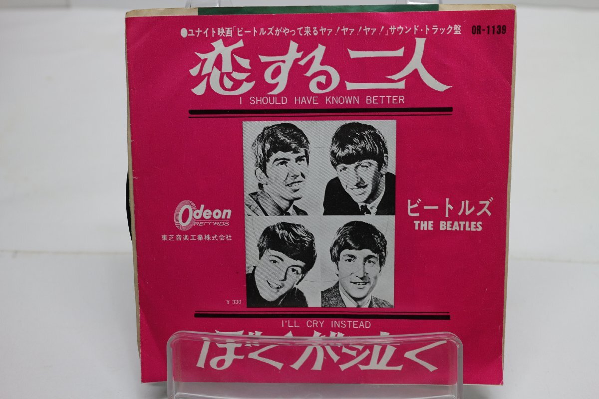 - [TK2124EP] EP ビートルズ/恋する二人 B面:ぼくが泣く オデオン黒盤フチ無し 見開き歌詞カード 盤スレ多いが音質良好 定価¥330