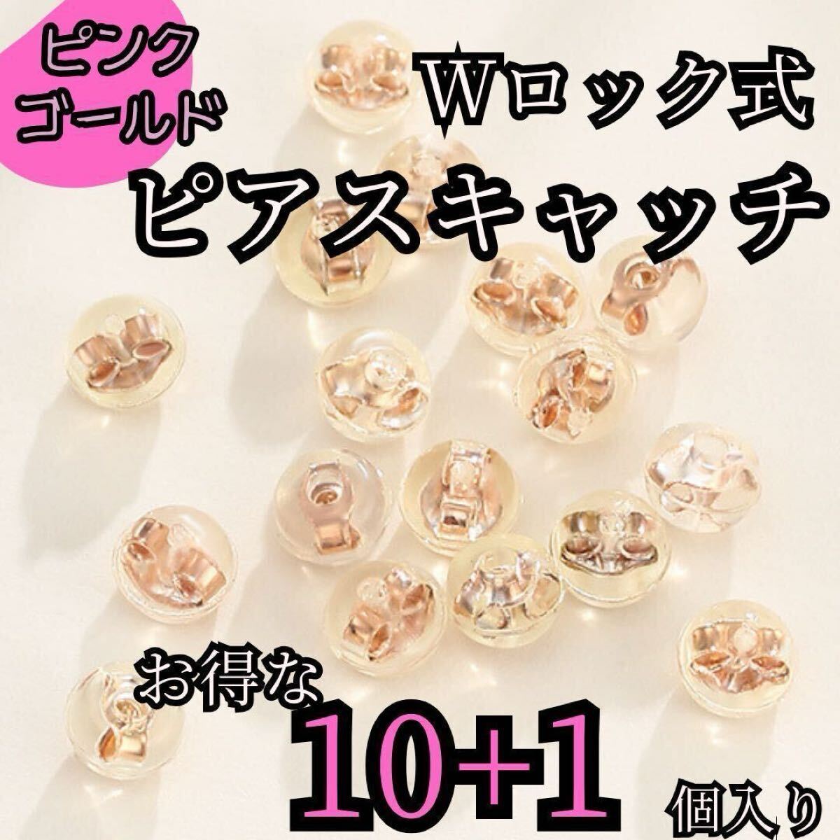 > ピアスキャッチ シリコン 落ちない 11個 ピンク ゴールド 超強力 ダブルロック ハンドメイド かわいい 大容量 外れにくい ピンク 落ちない