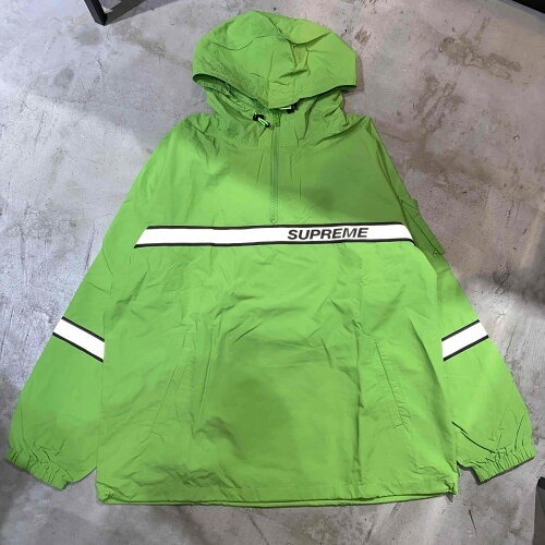 > Supreme 18ss Reflective Taping Hooded Pullover Green Lサイズ シュプリーム リフレクティブ テーピング フーデッド プルオーバー