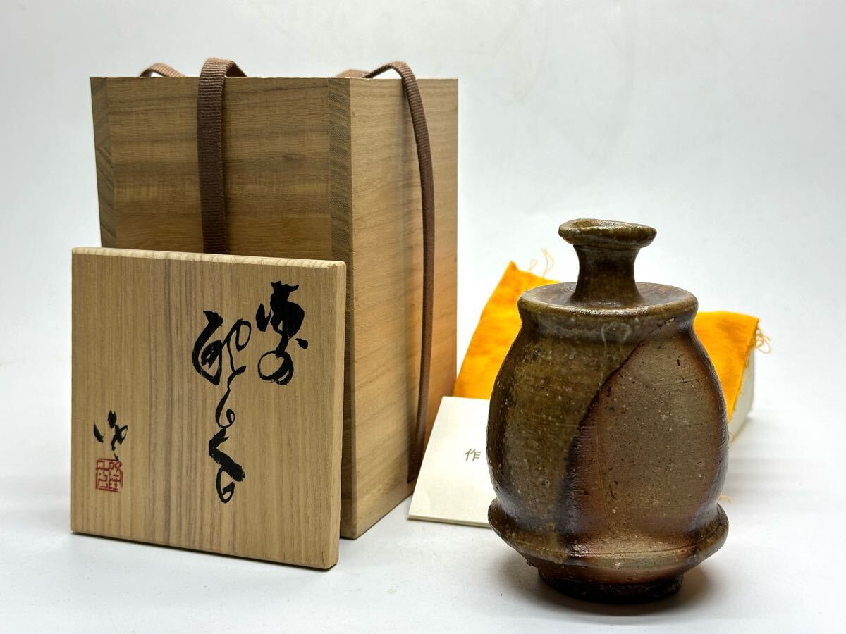 - 隠崎隆一 岡山県無形文化財 備前 徳利 酔器 共箱 共布 栞 ⑦