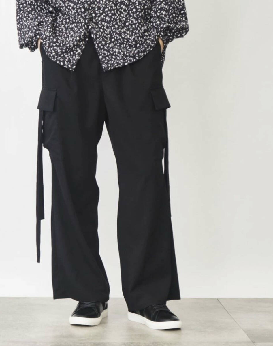 > THE SHOP TK ザ ショップ ティーケー TAKEO KIKUCHI タケオキクチ パラシュート カーゴパンツ 黒 ブラック カジュアル スラックス レーヨン