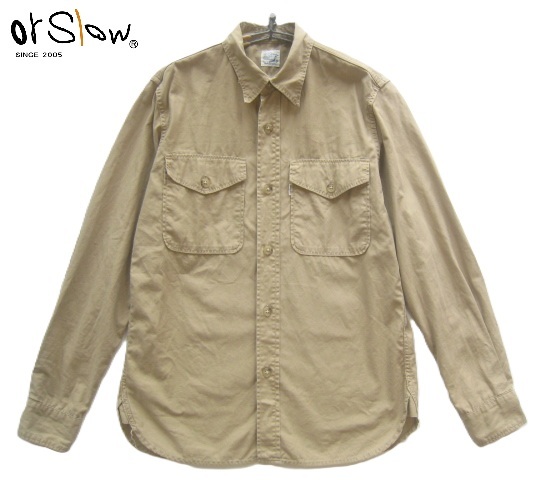 - 希少日本製!!orslow オアスロウ*ミリタリーディティール ダブルポケット シャツ 2 M ベージュ