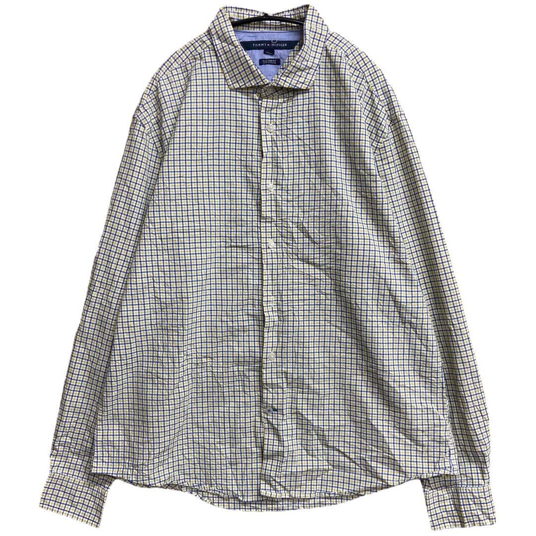 - トミーヒルフィガー メンズ長袖シャツ 黄×紺チェック XL コットン【1940