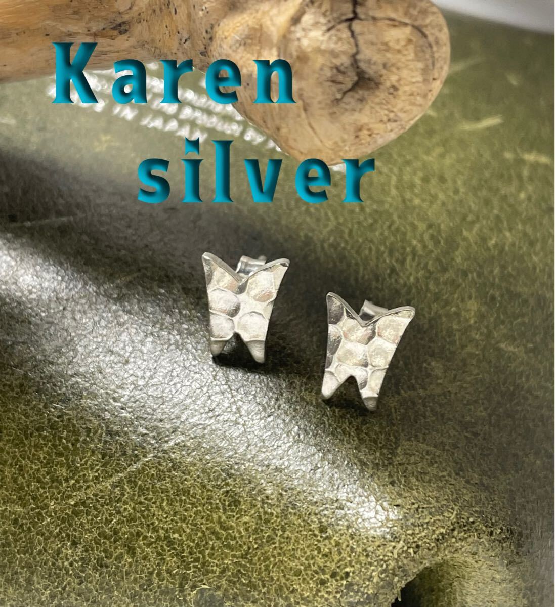 - R6911まだけB カレンシルバーピアス両耳蝶チョウ エスニックハンドメイド叩き打ちシルバー bケk