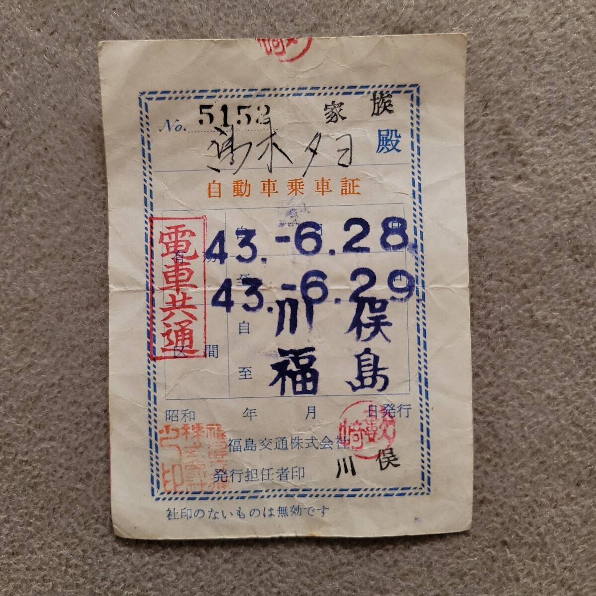 - 福島交通 昭和43年 川俣~福島 自動車乗車券 当時物