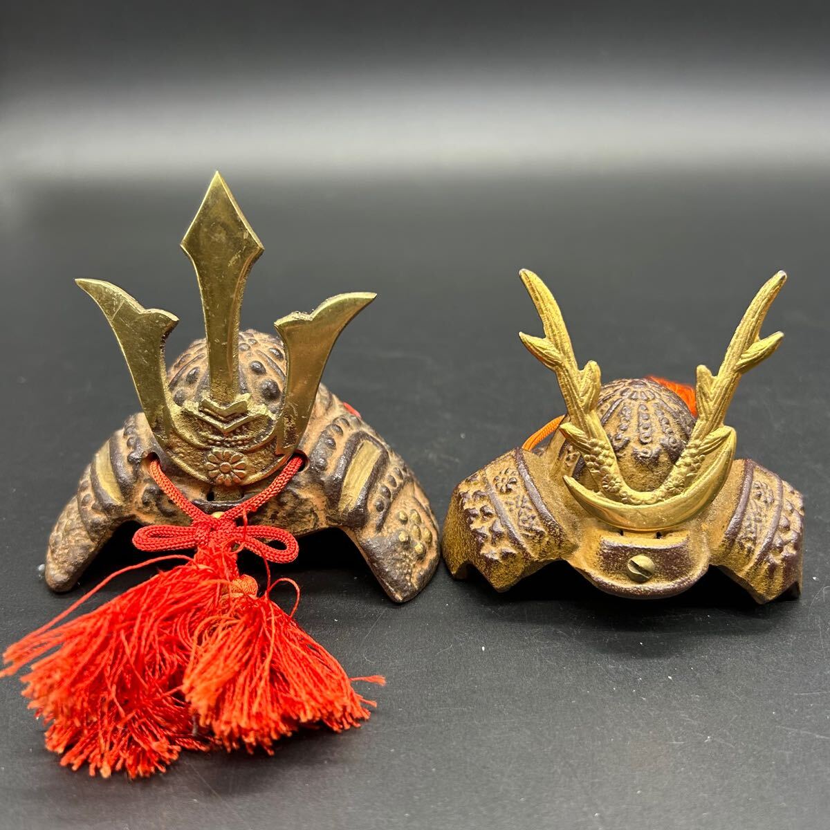- 兜飾り 鉄兜 鋳物 鉄物 武将兜 山中鹿之助 ミニチュア 置物 ト20-9