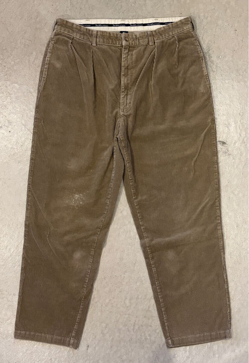 > 【90s】POLO RALPH LAUREN ポロラルフローレン コーデュロイパンツ ツータック テーパード メンズ W38 ベージュ 太畝 vintage 古着 正規 ②