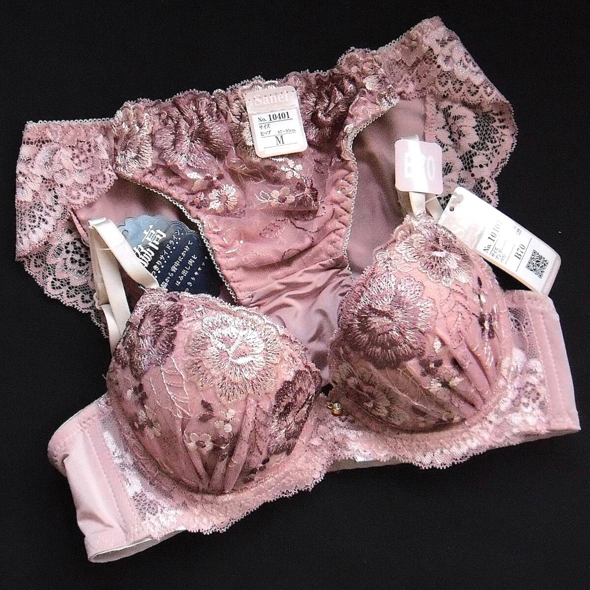 - Sanei ロマンティックフラワー ブラジャー&ショーツセット B70/M サンエイ 脇高設計 下厚内蔵モールドパッド 刺繍レース ピンク 新品送料込