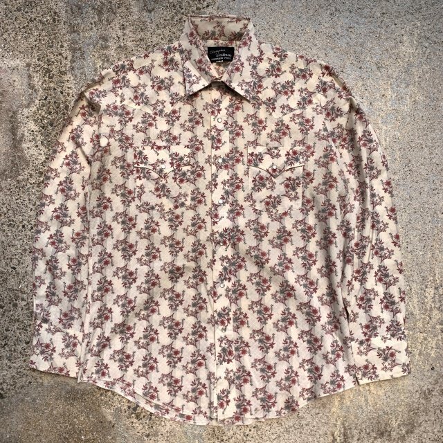 > 【L】70s-80s 長袖ウエスタンシャツ 花柄■ビンテージ オールド レトロ アメリカ古着 総柄 綿ポリ 16 1/2