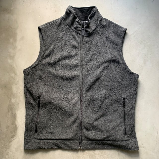 > 【L/XL】Columbia ジップアップ フリースベスト グレー 無地■ビンテージ オールド アメリカ古着 90s コロンビア アウトドア