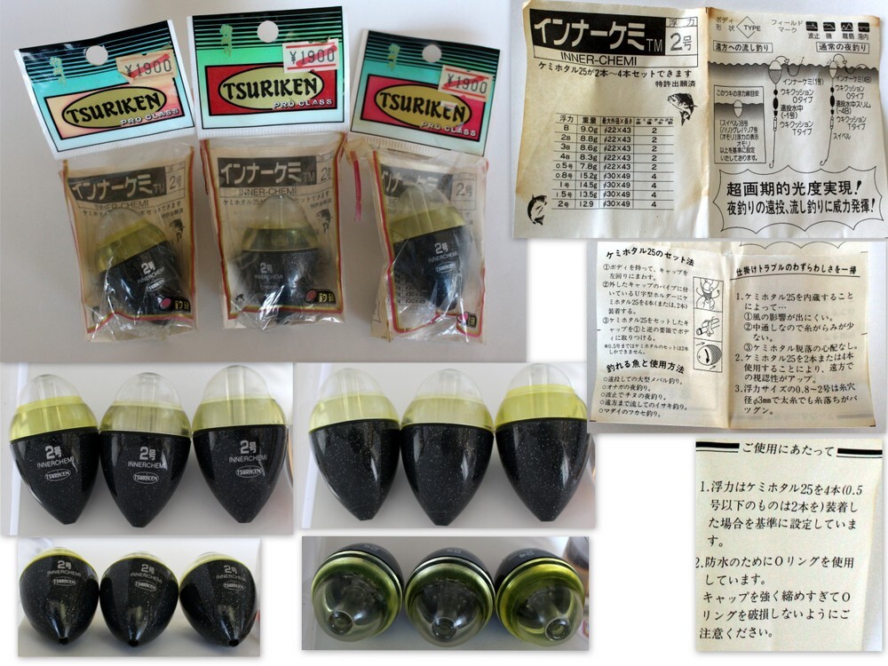 - 1174/未使用品・長期店頭販売品/TSURIKEN 釣研 インナーケミ 2号 3個セット ※ケミホタル25が2~4本セット可能