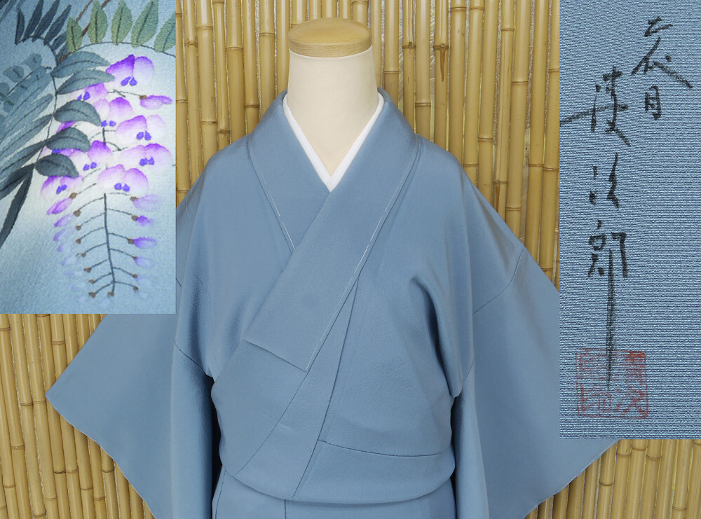 - 【京かんざし】198「京都友禅作家 染匠【二代目 清次郎】」色無地 躾糸付未着用身丈155 cm裄丈63 cm★即決送料無料!
