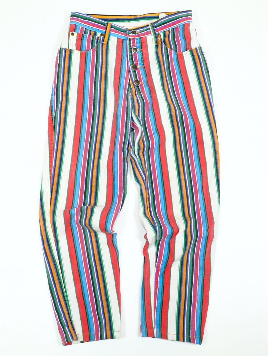 - 1980s ビンテージ マルチストライプ デニムパンツ カラフル アート 古着屋 テーパード USA
