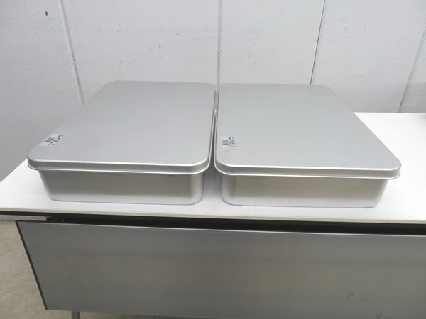 > H216◆アカオアルミ◆番重2個セット(蓋付) 大110 550×370×110 栃木 宇都宮 中古 業務用 厨房機器