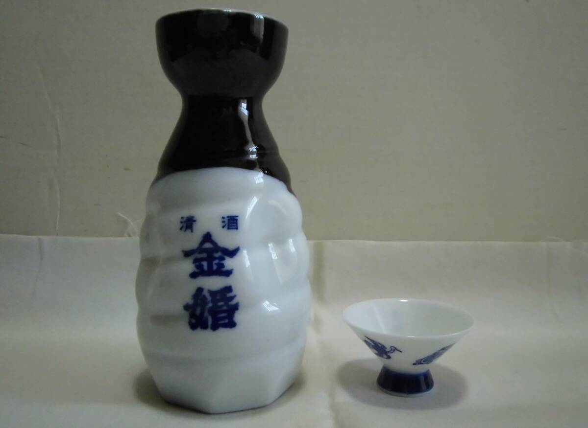 - 徳利 ぐい呑み 清酒 金婚 お猪口 盃 杯 染付 日本酒 銘柄 酒器揃 工芸品 陶器 レトロ
