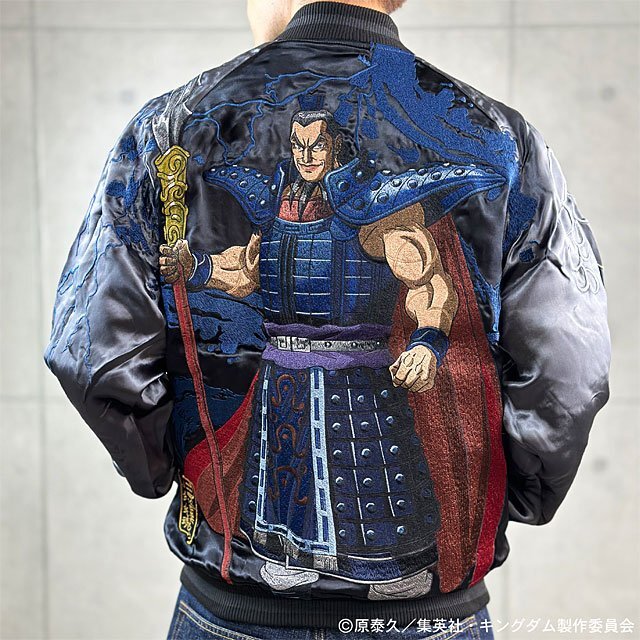 - 絡繰魂×キングダム 秦の怪鳥 王騎リバーシブルスカジャン◆絡繰魂 ブラックXXLサイズ 244013 和柄 スーベニアジャケット