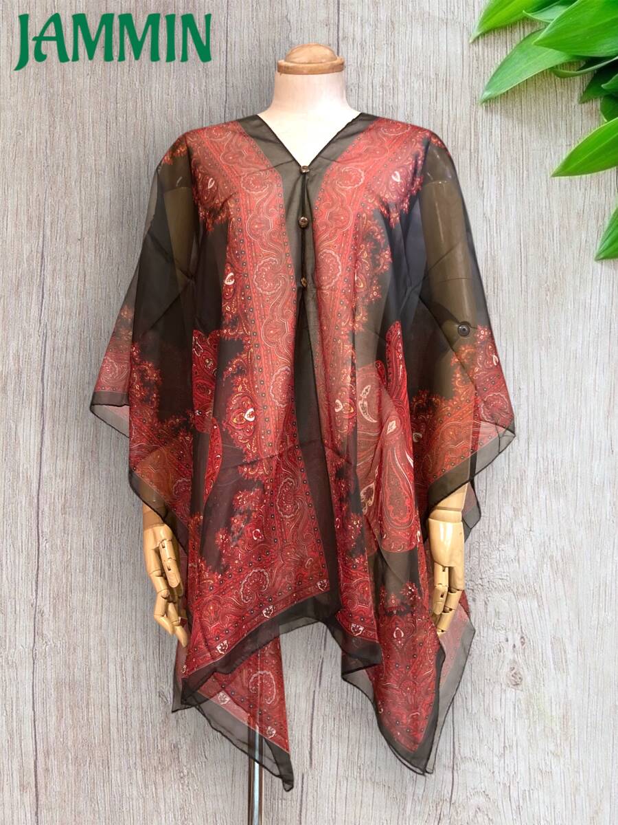 - ペーズリー柄ふんわりトップス アジアン エスニック 黒 ヒッピー 衣装