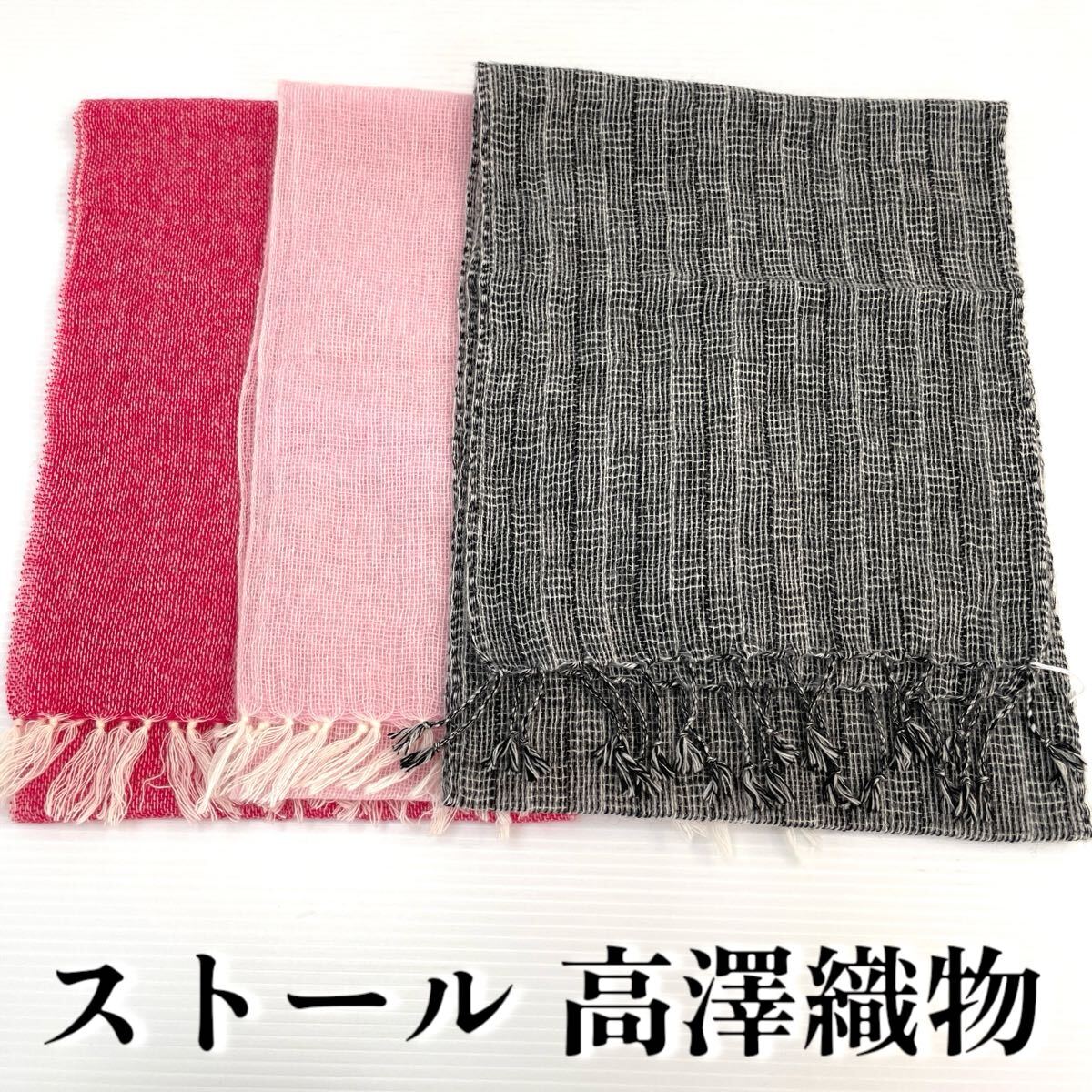 > 【ストール 高澤織物】未使用 カシミヤ100% 黒 ピンク 赤系 秋冬 スカーフ ショール 肩掛け 膝かけ 国産 日本製 防寒 #0263-518Z2