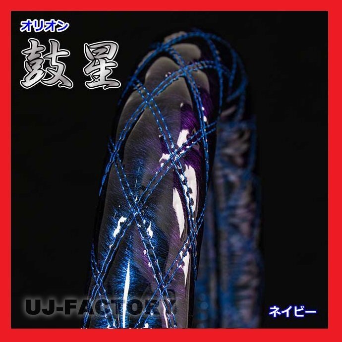 > ★MIYABI/オリオン(鼓星)/極太ハンドルカバー★ネイビー ML (39cm~40cm)エナメルレザー/ダブルステッチ カラー変化と贅沢な輝き♪