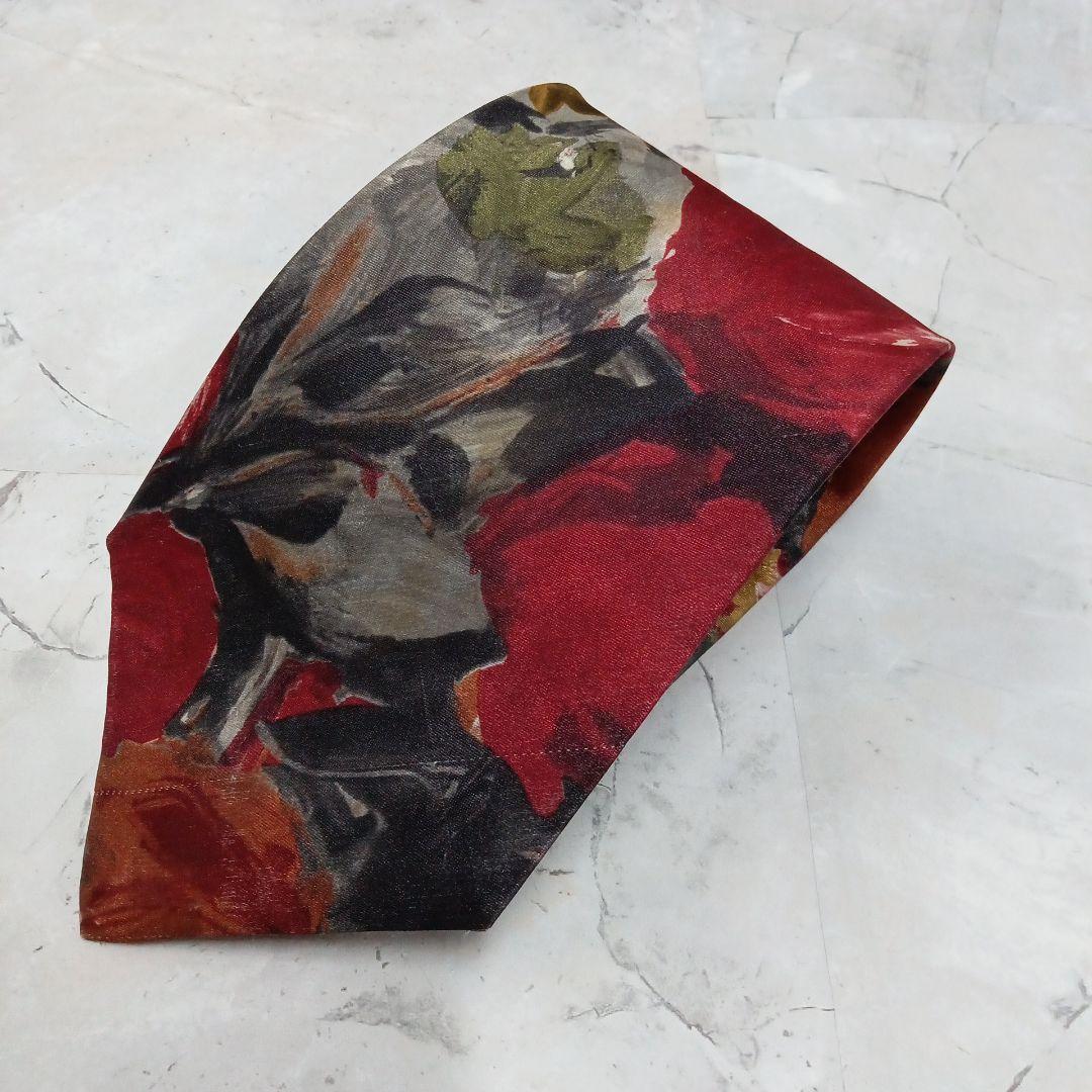 - エティエンヌアイグナー ネクタイ 赤×灰×茶等 総柄 派手 水彩画風【n332】
