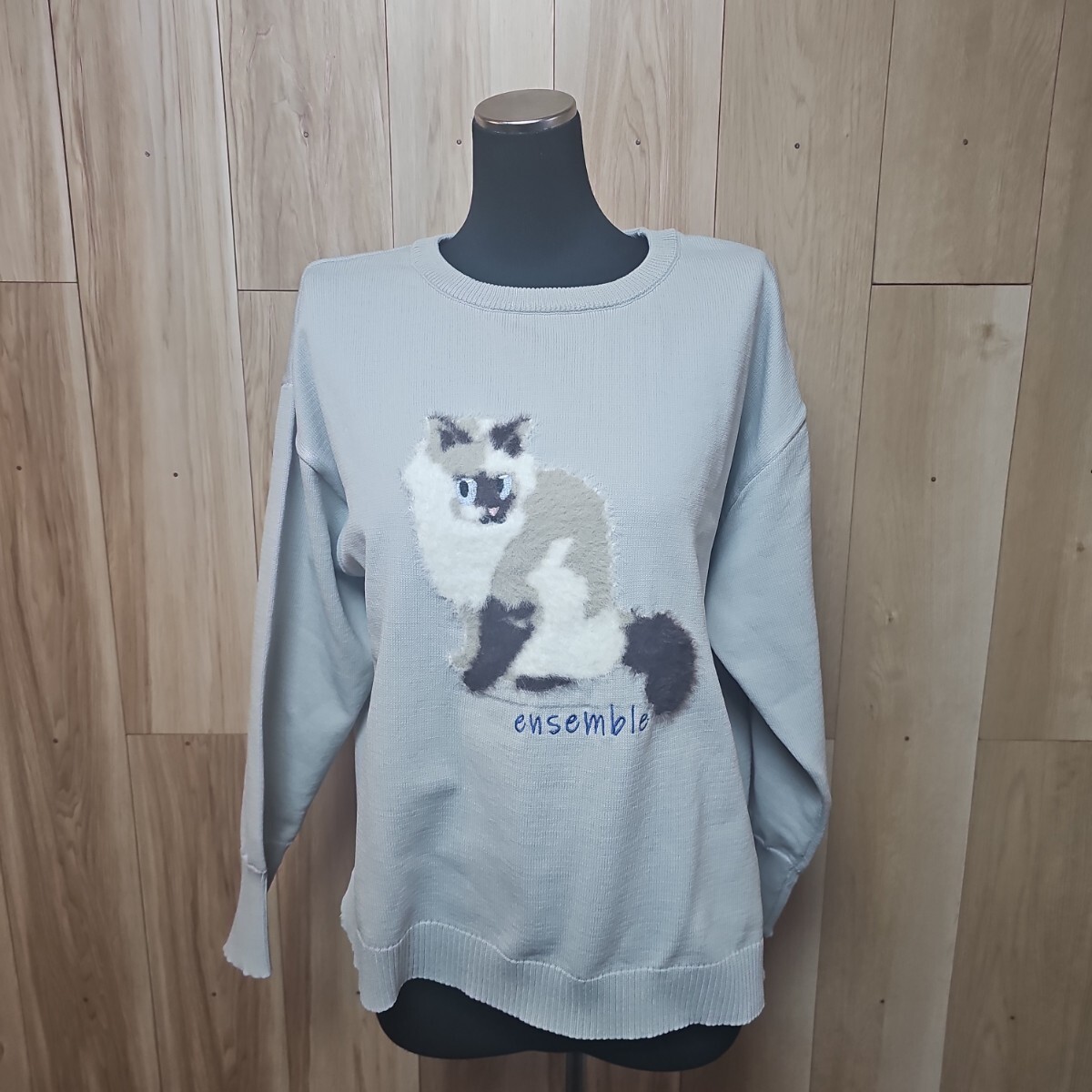 > 超美品 Zelal sports ゼラールスポーツ★立体的なテクニック シャギージャガード アニマルモティーフ プルオーバー ショップチャンネルネコ