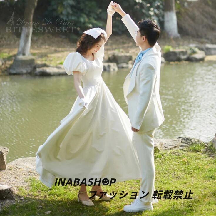 - パフスリーブ ウェディングドレス ウエディングドレス ウェディング ウエディング ファスナー aライン 袖あり 花嫁 結婚式 海外挙式 ドレス