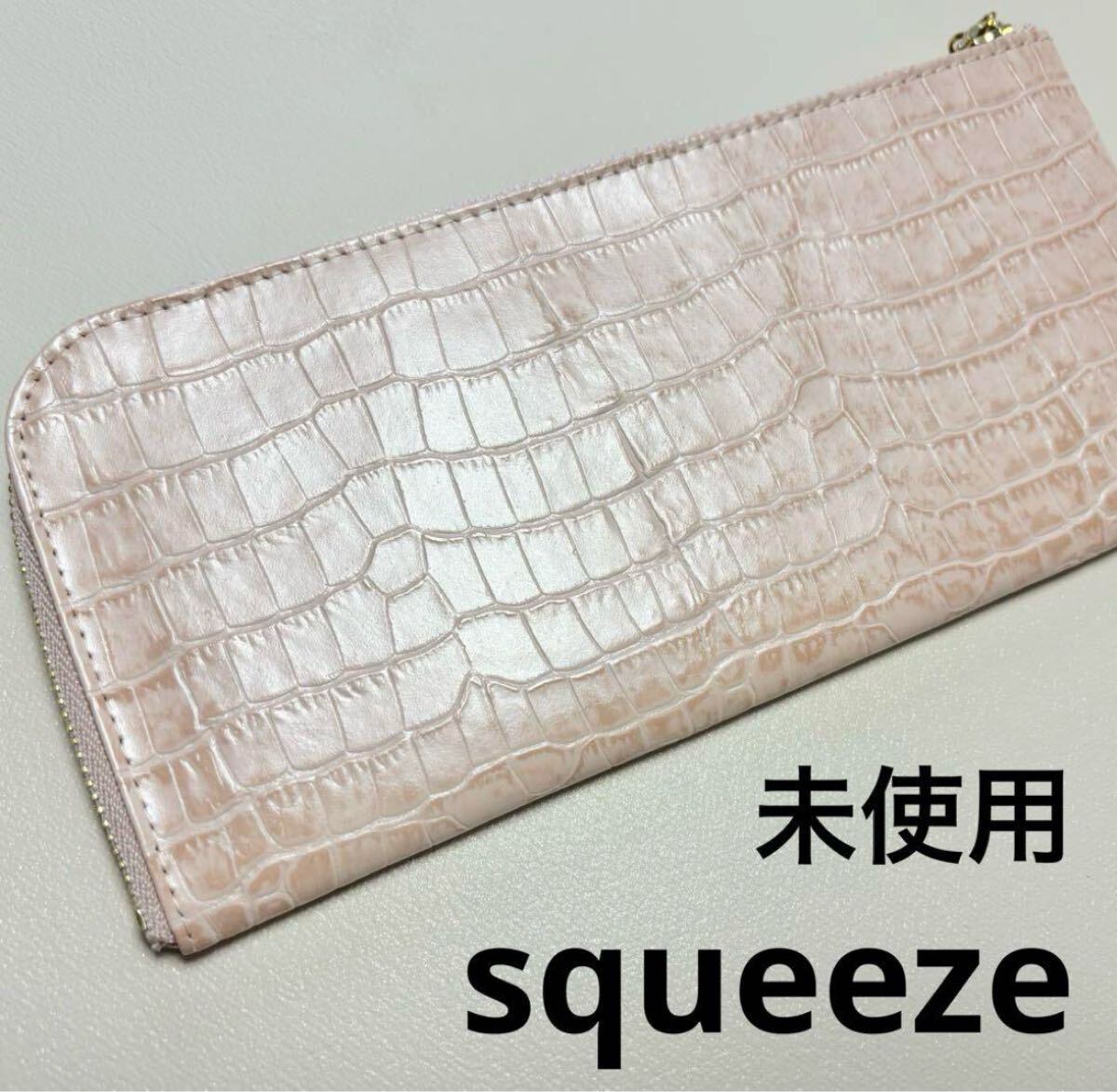 - 未使用◇squeeze◇クロコ型押し L字長財布◇ピンクベージュ