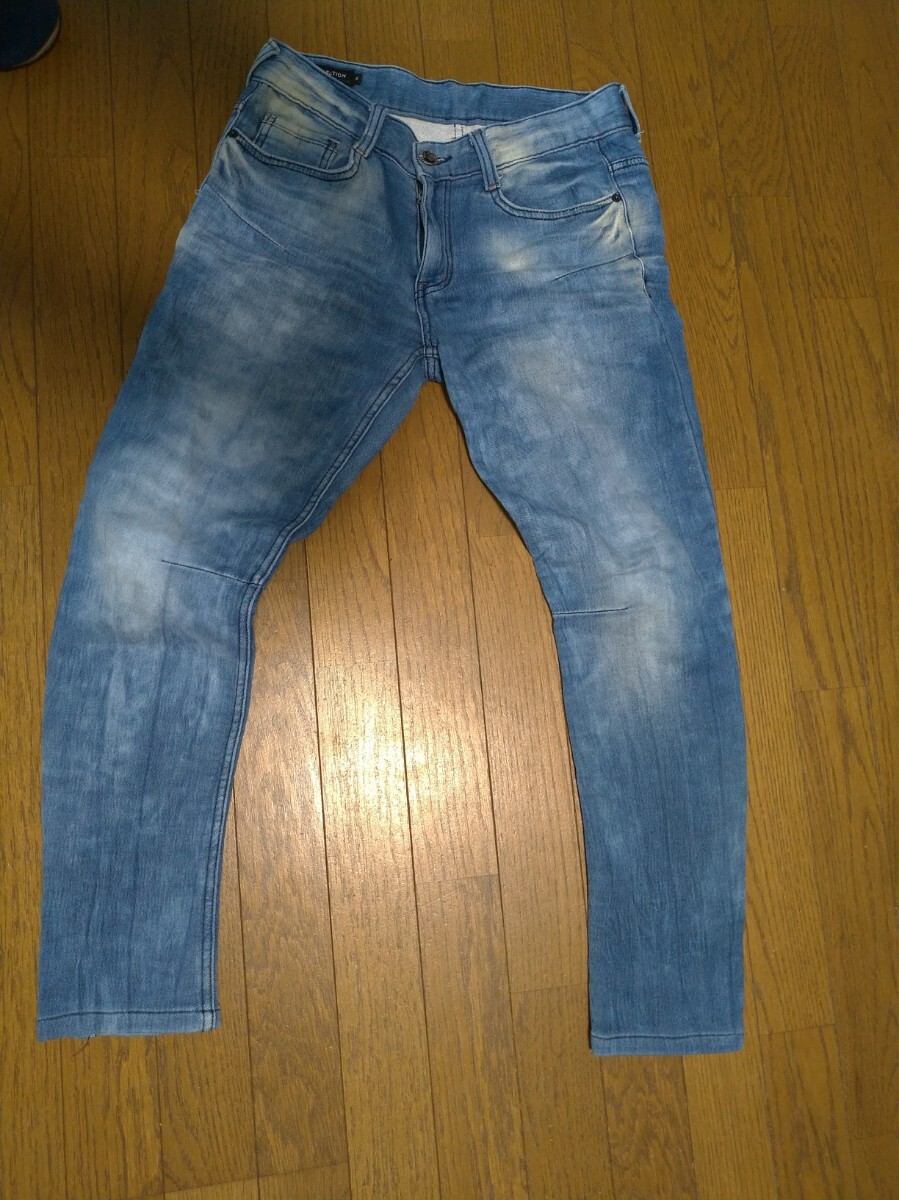- GRF COLLECTION ジーアールエフ コレクション USED加工 スウエットデニムパンツ テーパードスキニー サイズS メンズ インディゴ 膝立体裁断