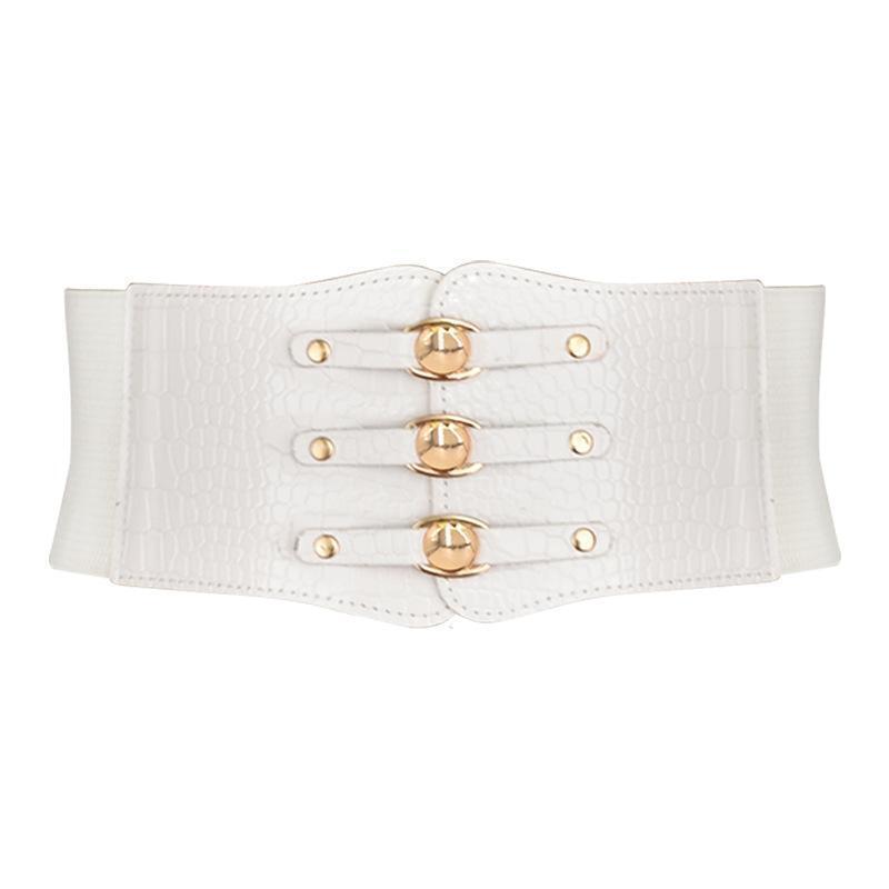 - 68cm~89cm【ホワイト色】ゴールドバックル 幅広ゴムベルト