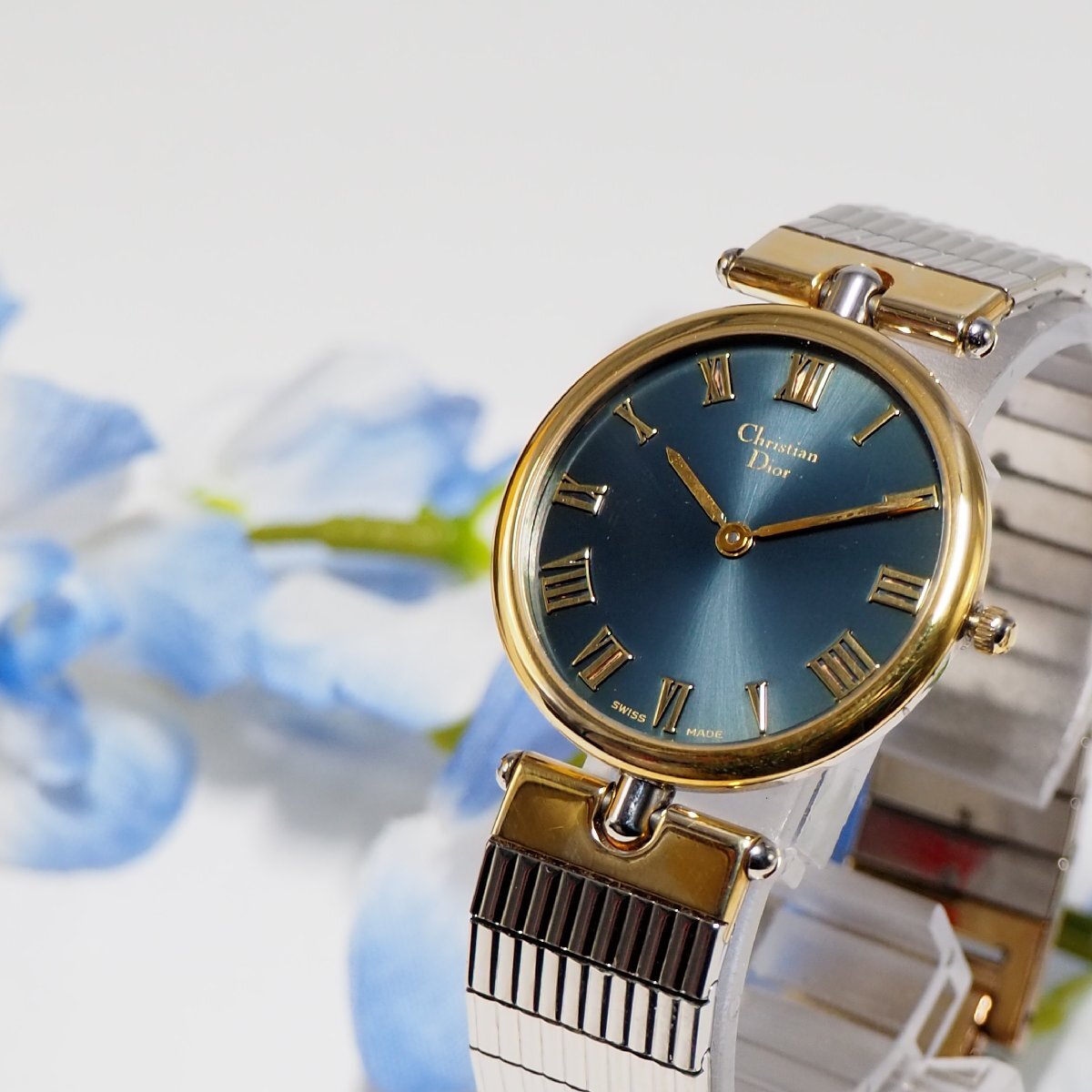 ★★★★ クリスチャンディオール DIOR ネイビー文字盤 メンズ 腕時計 ゴールド・シルバー F519 中古★★★★
