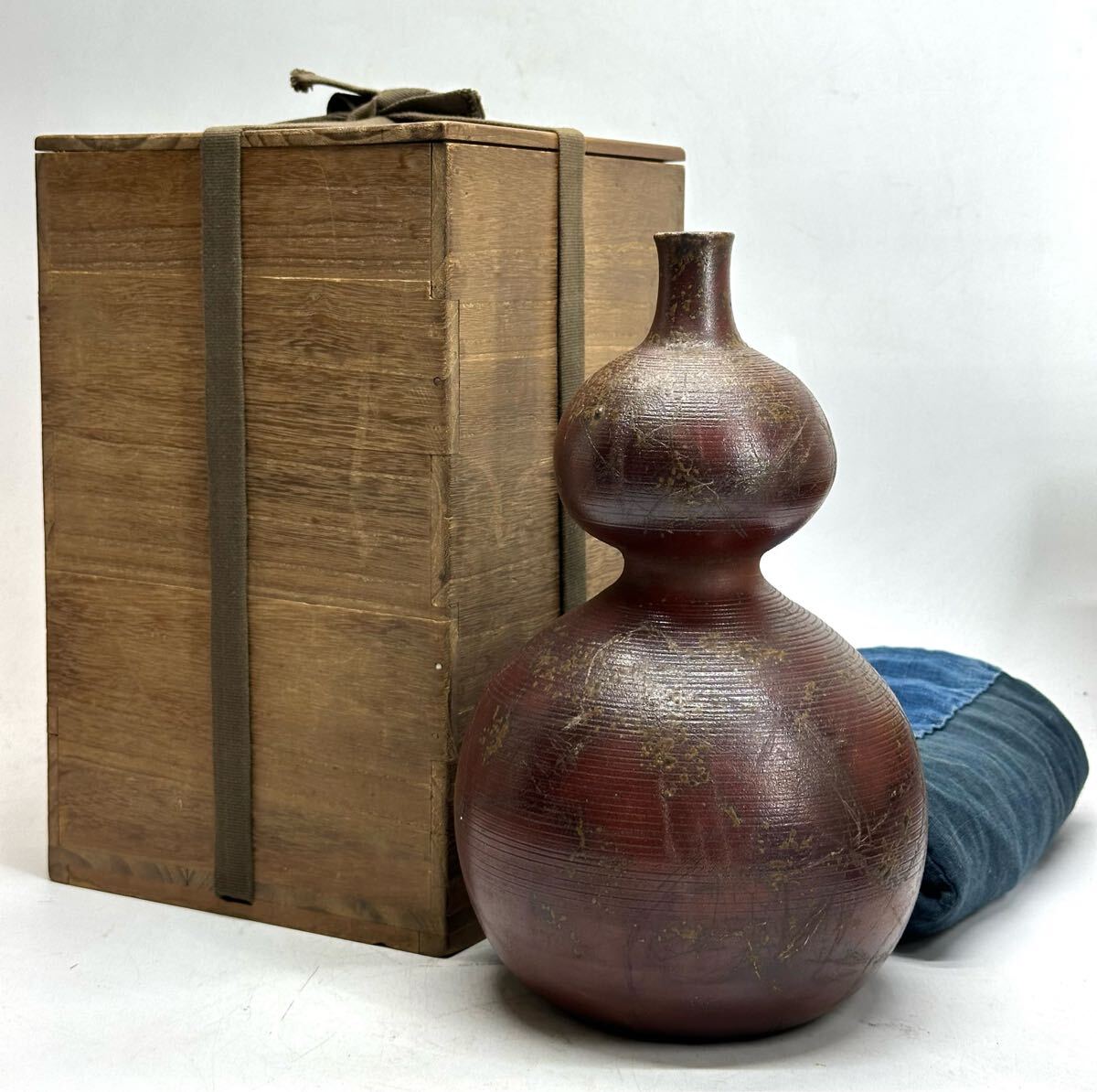 - 古備前 糸目瓢箪花入 一輪挿し 大徳利 胡麻 花瓶 茶道具 合わせ箱