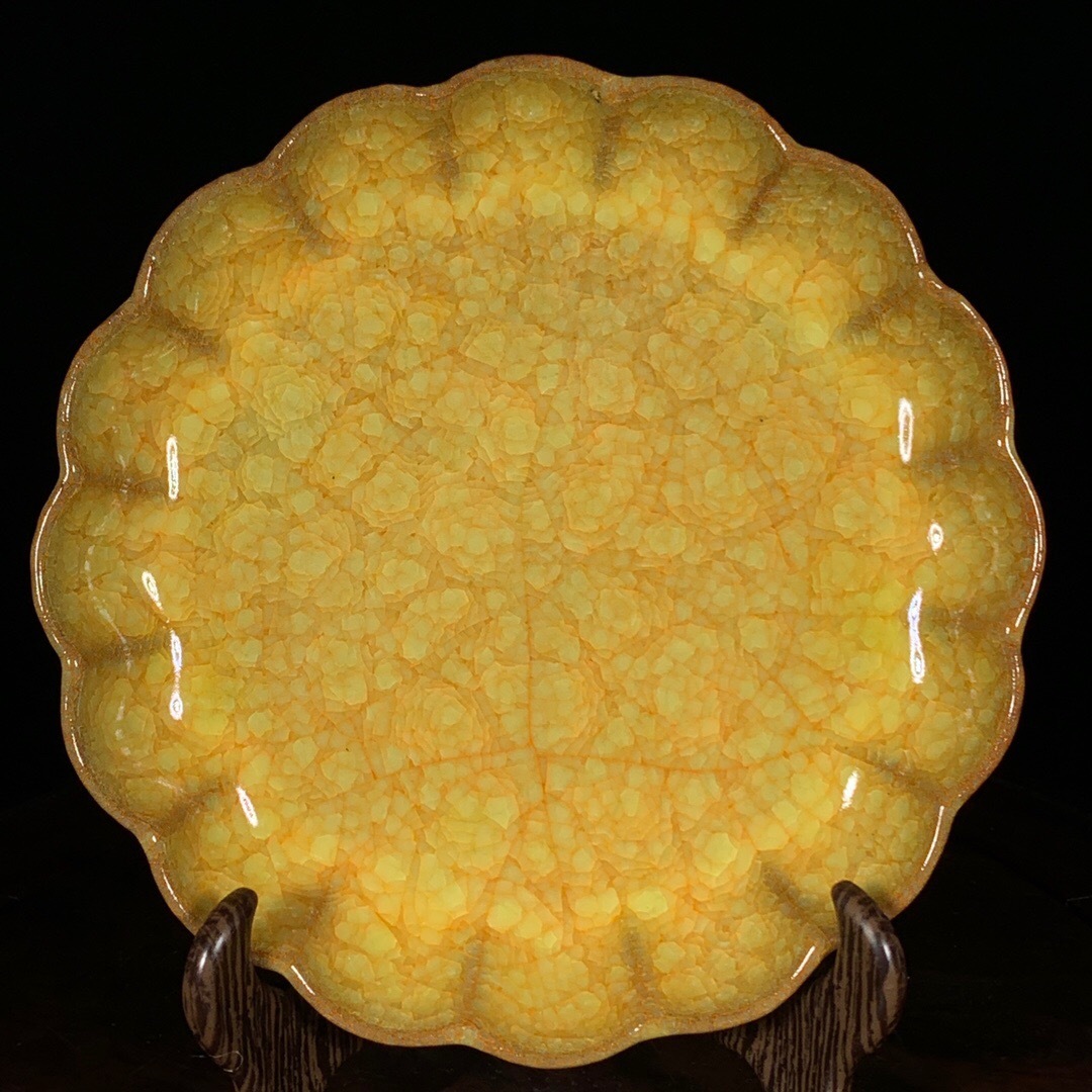 - ▽鴻▽ 宋 官窯 黄釉 冰裂紋 花口洗 古陶瓷品 置物 古賞物 中国古玩 中国古美術