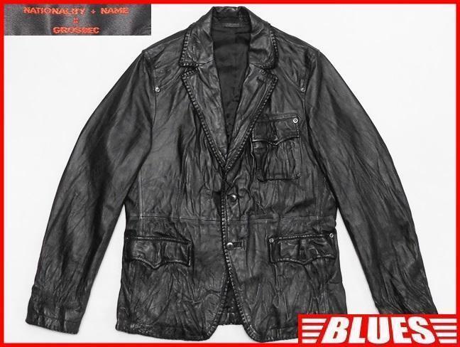> 即決★NATIONALITY + NAME★メンズL位 レザーテーラードジャケット 黒 ブラック 本革 ビジネスジャケット 本皮 スーツ 背広 革ジャン