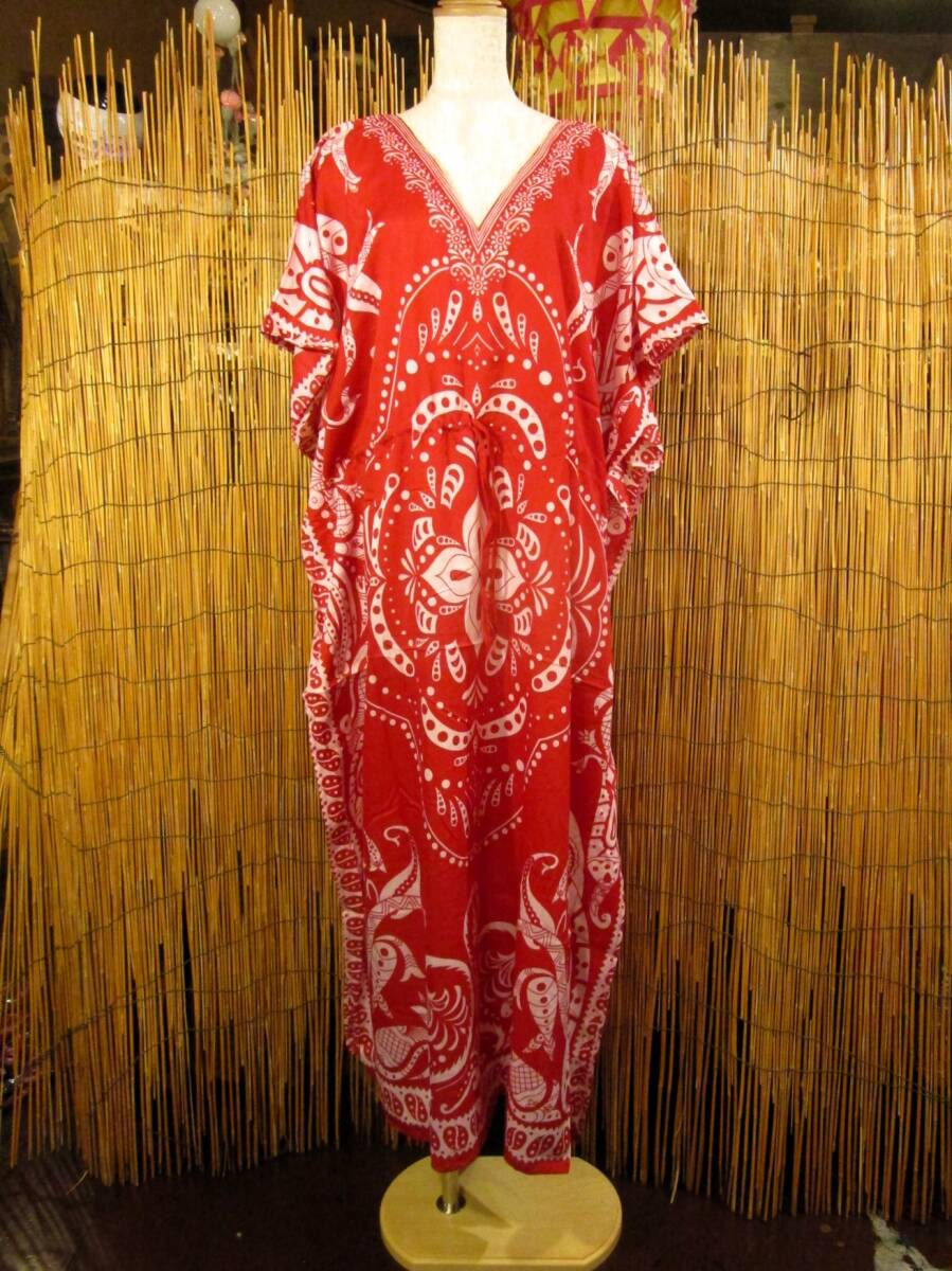 > ③新品*薄手ビスコース素材*ゆったりサイズ *曼荼羅風プリント*ガラベーヤ*ポンチョ風*マキシ丈*ワンピース*ベリーダンス