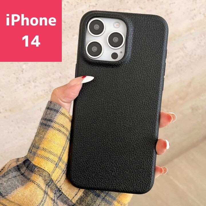 > iPhone14 レザー スマホケース 韓国 おしゃれ 黒 シンプル 人気