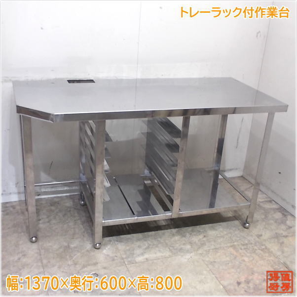 - トレーラック付作業台 1370×600×800 業務用 中古厨房/25B2716Z