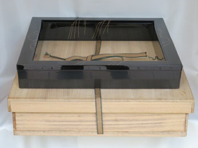 - (二月◆特売品)輪島塗 蒔絵師 千場茂作 芽柳蒔絵 炉縁 黒蝋色塗 茶道具【税込・送料込】【中古品】