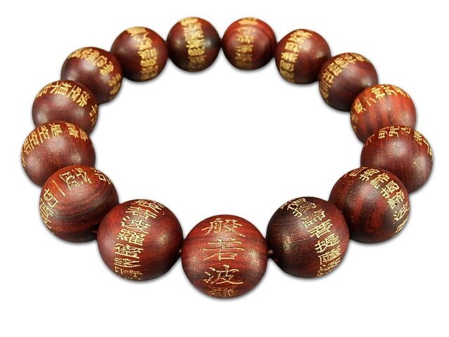 - 般若心経金箔文字血檀木数珠ブレスレット約15mm玉結び無し般若波羅蜜多心経プライム