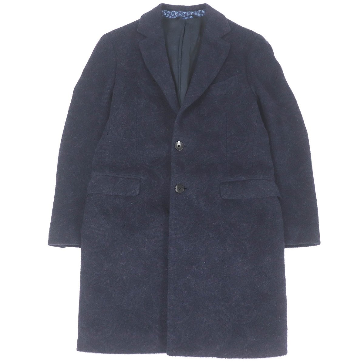 > 極美品□ETRO エトロ 21AW ウール モヘア ペイズリー 総柄 ロゴボタン ロング丈 チェスターコート ネイビー 46 イタリア製 正規品 メンズ