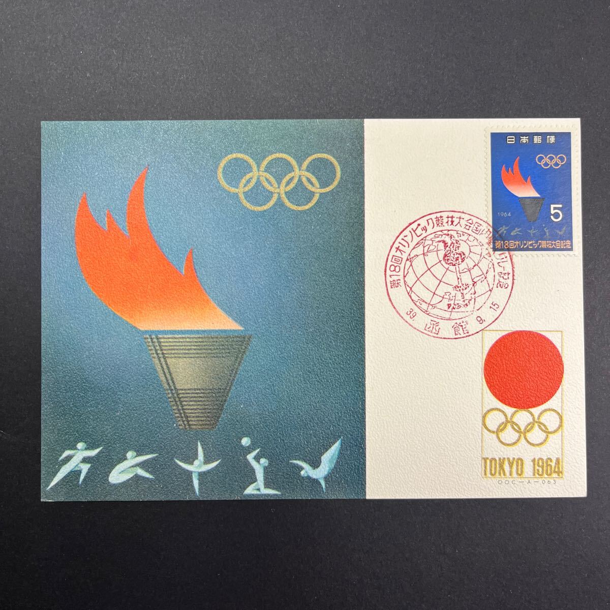 - 東京オリンピック1964年5円切手マキシマムカード 第18回オリンピック競技大会国内聖火リレー記念印! 昭和39年 函館印OLYMPIC『上中1』