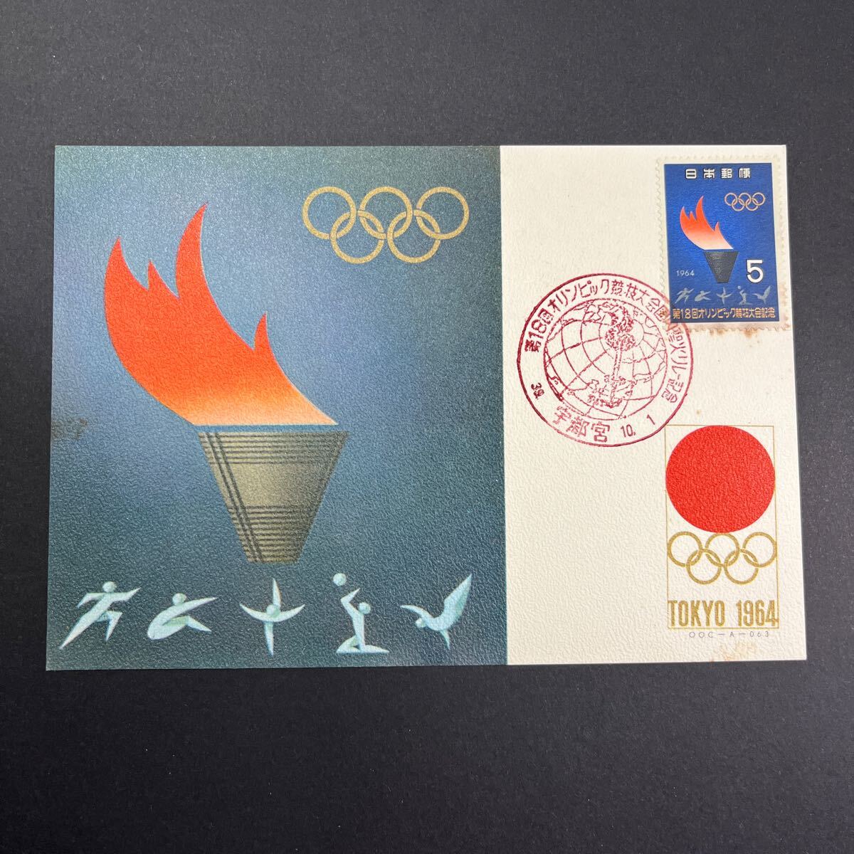 - 東京オリンピック1964年5円切手マキシマムカード 第18回オリンピック競技大会国内聖火リレー記念印! 昭和39年宇都宮印OLYMPIC『上中1』