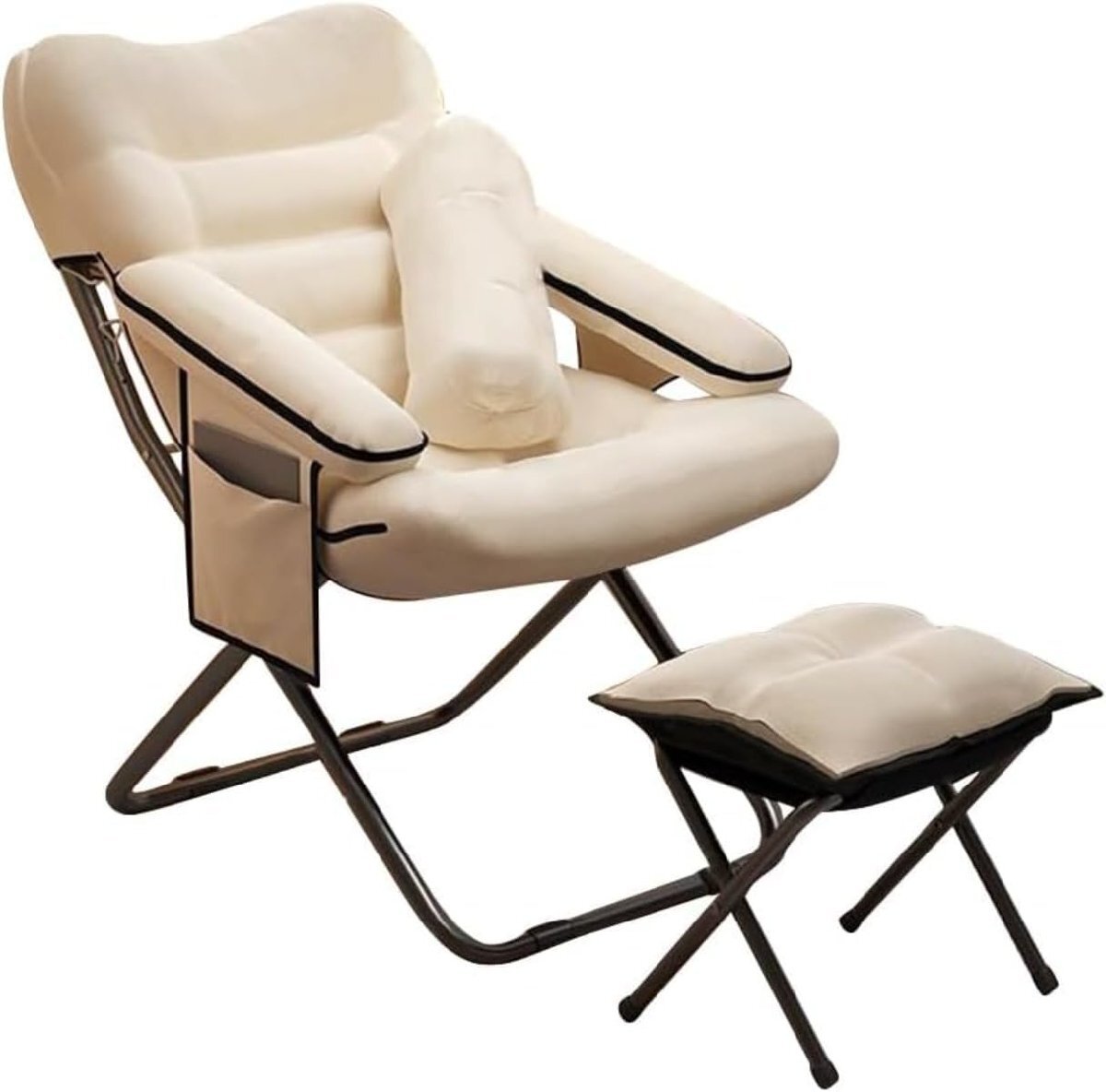 - リクライニングチェア 折りたたみチェア アウトドアチェア リラックスチェア 角度3段階調節 (白です,単椅子です+抱きまくら+足台)