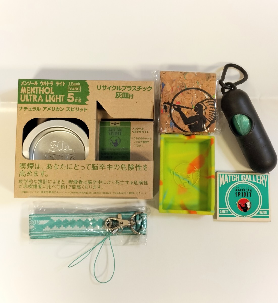 - アメスピ 灰皿 コルクポーチ ネックストラップ カラビナ付きケースなど6点セット ノベルティ