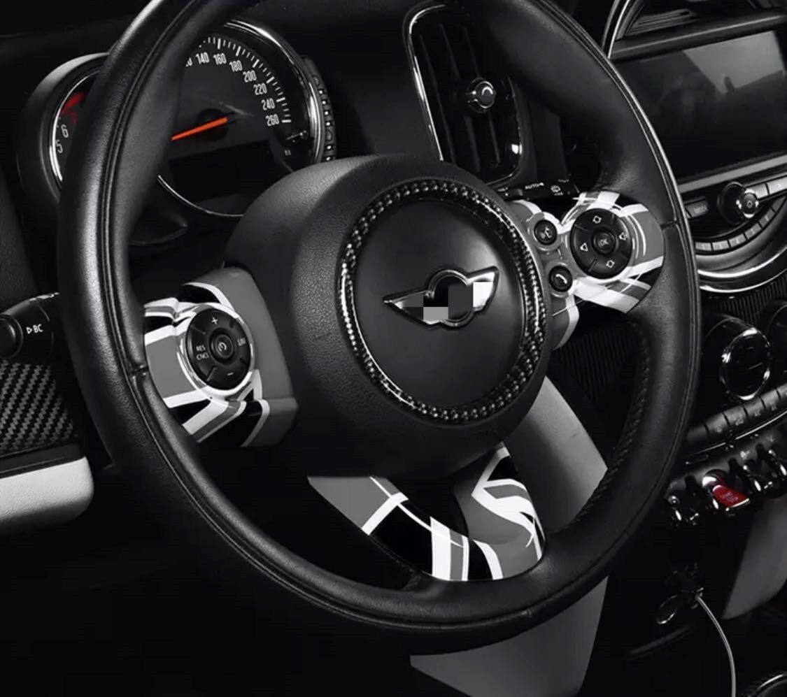 > デザイン性UP♪ ステアリング スイッチ カバー BMW MINI ブラックジャック ミニ F54 クラブマン ワン クーパー クーパーS D SDオール4