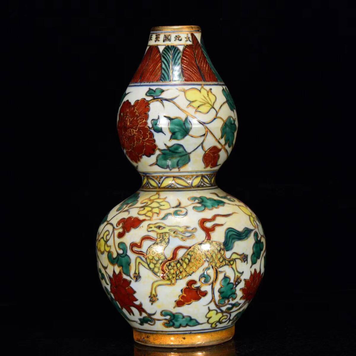 - ▽鴻▽ 元 五彩 描金 鳳紋 ひょうたん 古陶瓷品 置物 古賞物 中国古玩 中国古美術