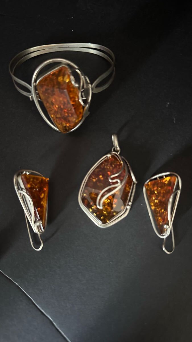 - ヴィンテージジュエリー琥珀、ブレスレット、ペンダント、ピアス、セット中古品