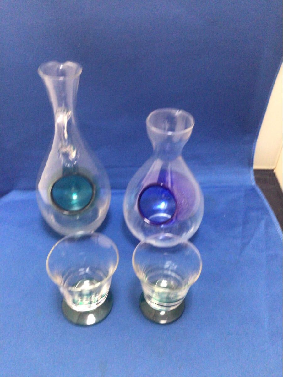 - 江224、冷酒セット、 ガラス製グリーン ブルー